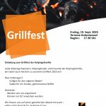 - Grillfest (09. September 2022)Liebe Kolpingschwestern, Kolpingbrüder und Freunde der Kolpingsfamilie, wir laden euch recht Herzlich zu unserem diesjährigen Grillfest am 09. September um17:30 Uhr an der Albvereinshütte ein.Grillgut sollte jeder für den Eigenbedarf mitbringen. Salate gern um ein vielfältiges Buffetzusammenzustellen. Getränke werden besorgt und können erworben werden.Wir würden uns sehr freuen, diesen Abend mit Euch zu verbringen. Eure … Weiterlesen: Grillfest (09. September 2022)